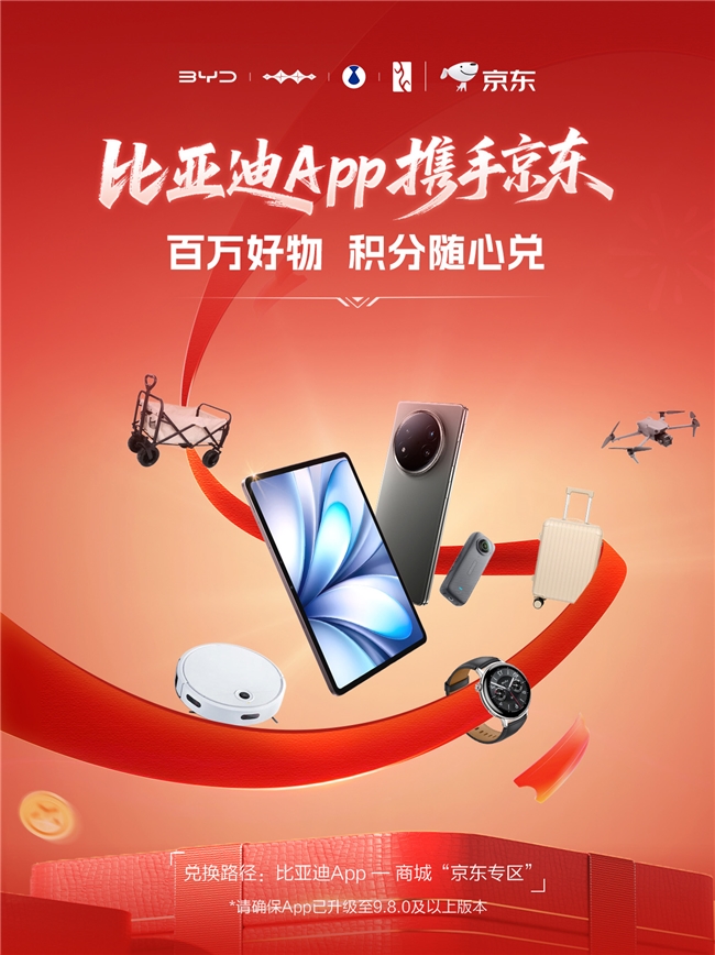近日,京东正式与比亚迪达成深度合作,成为首个入驻比亚迪APP和小程序的积分兑换平台。双方依托京东在供应链、履约及数智化服务领域的核心优势,创新搭建积分兑换专属平台,以丰富商品矩阵与高效履约体验,精准满足比亚迪王朝、海洋、方程豹、腾势、仰望“五网四品牌”超千万存量车主的积分兑换需求,为汽车行业用户运营与数智化服务融合树立新标杆。