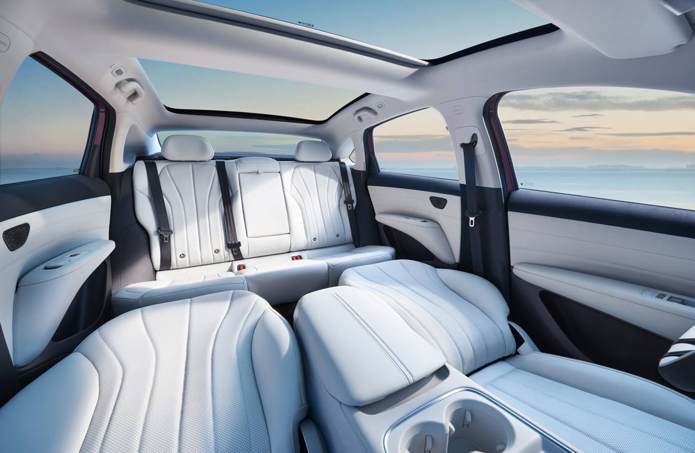 在空间实用性上,极狐S3实现了进一步突破。不同于传统10万级家轿仅满足基础乘坐需求的设计,该车前排座椅可放平,形成1.8㎡的平整空间,搭配云米浅色系内饰、双镜穹顶天幕及电动遮阳帘,兼顾实用性与舒适性。同时,其后排座椅支持118°仰角调节,进一步提升了乘坐体验,这一配置在同价位车型中较为少见。